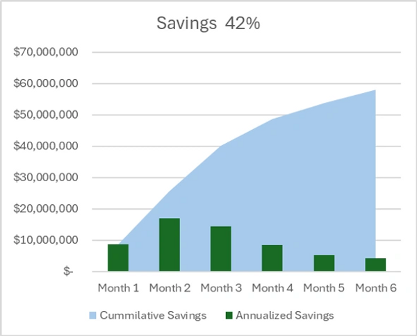 Resolute delivers a stress-free procurement process that ultimately helps communication providers reduce spend on monthly recurring expenses including circuits, software licensing and physical infrastructures by 25% - 42%.